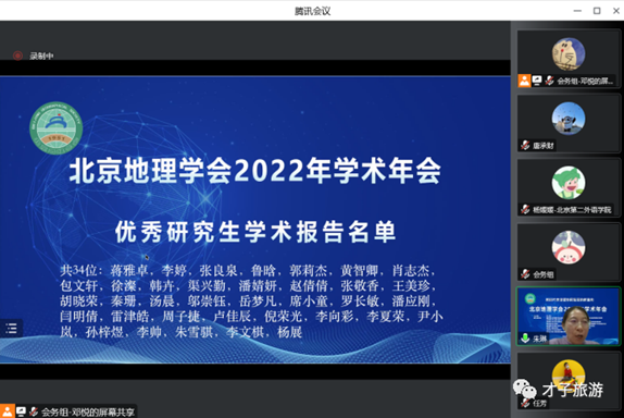 在闭幕式上,北京地理学会副秘书长朱琳教授宣读了本届年会优秀研究生学术报告获奖名单。闫明倩、汤晨两位学子均获得优秀研究生学术报告称号。本次会议主题聚焦,立足于新时代中国乡村振兴与乡村旅游发展问题,我院学子在与领域内专家学者进行学术交流的过程中获得了成长,也提升了我院旅游管理学科的学术影响力。